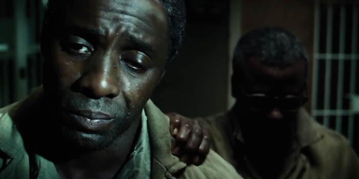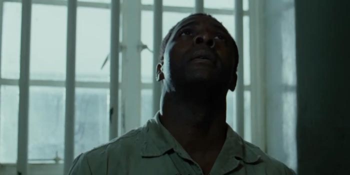 Amandla! Making the Power gesture to empower his friends and other prisoners. He is keeping his inner strength.
