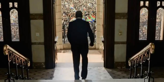 REframes his point of view into a peacefully and reconciliation based leadership (“My freedom and your freedom cannot be separated”)
